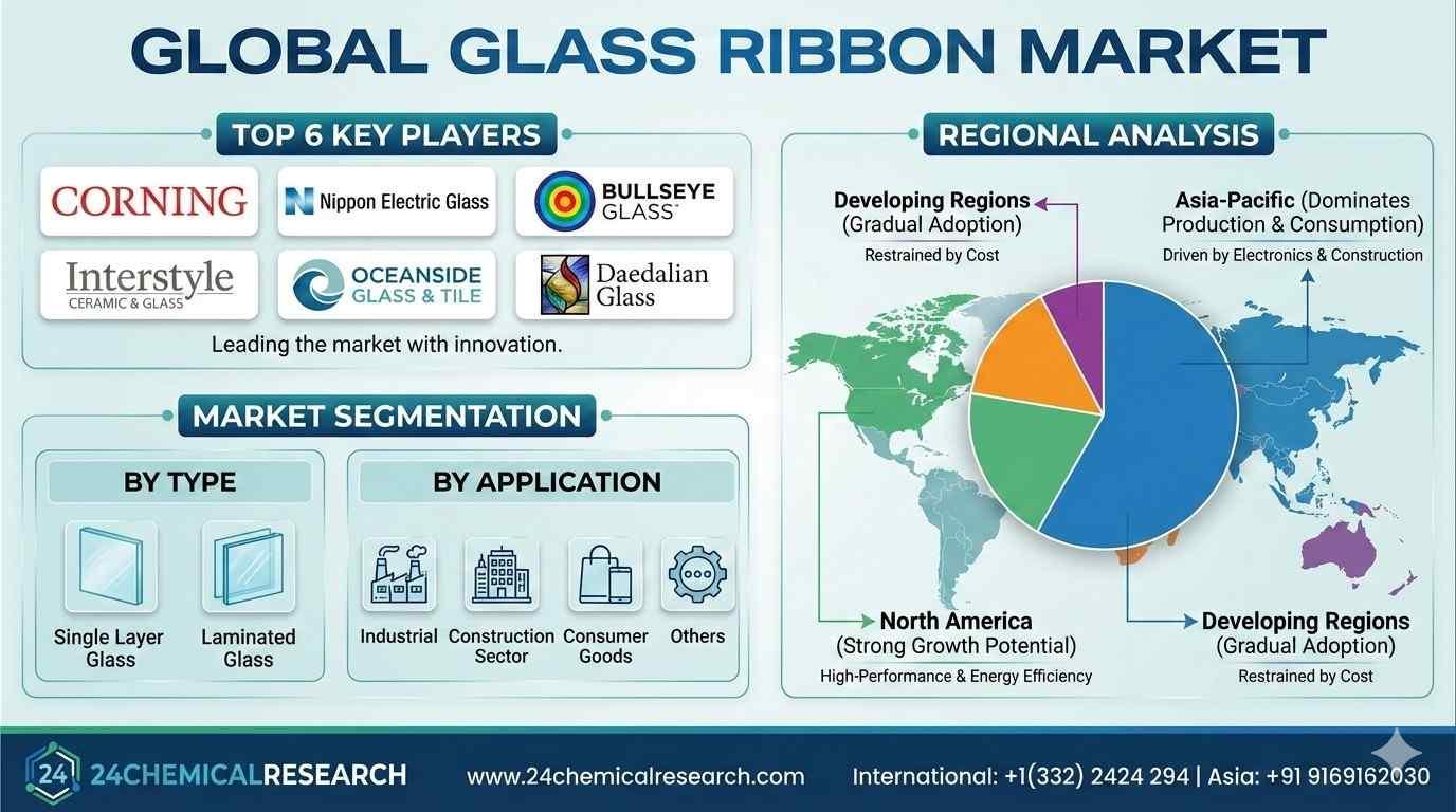 Global Glass Ribbon Market is poised for significant expansion, driven by increasing demand across industrial, construction, and consumer goods sectors. Glass ribbon, known for its ultra-thin, flexible properties and exceptional durability, is becoming indispensable for applications requiring high transparency and bendability. The growing emphasis on lightweight and sustainable materials in manufacturing is further propelling market growth.