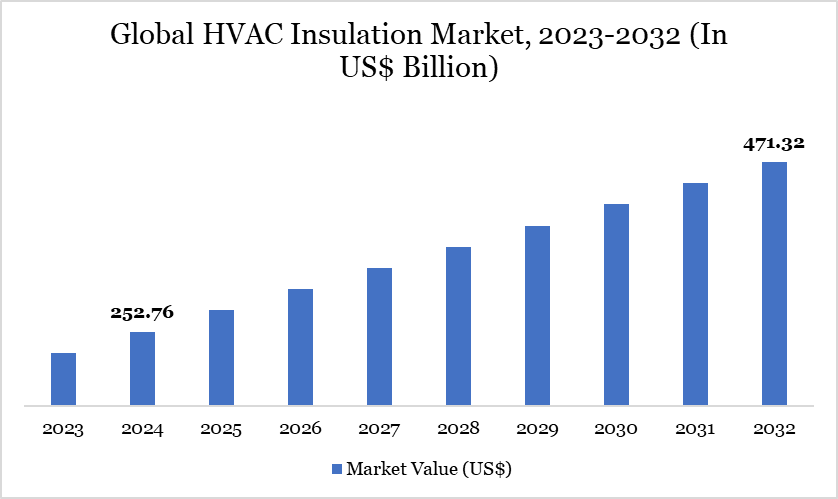 HVAC Insulation market reached US$ 252.76 billion in 2024 and is expected to reach US$ 471.32 billion by 2032, growing with a CAGR of 8.10% during the forecast period 2025-2032.