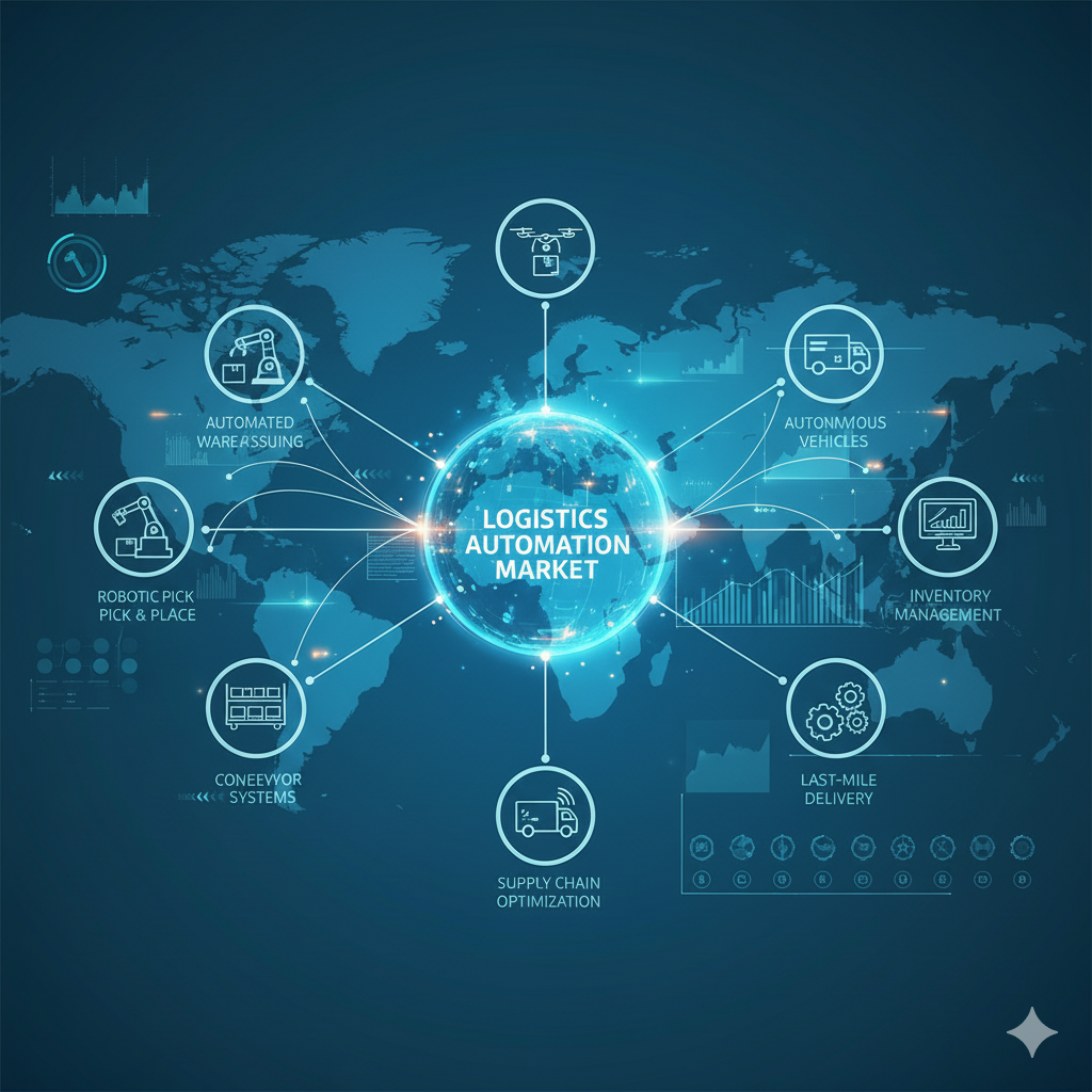 The logistics automation market involves the use of technology and automated machinery to streamline and optimize logistics operations. This includes processes such as warehousing, inventory management, order fulfillment, and transportation. The market encompasses a range of hardware, including robotics, automated guided vehicles (AGVs), and automated storage and retrieval systems (AS/RS), as well as software like warehouse management systems (WMS) and transportation management systems (TMS). The primary goal is to improve efficiency, reduce operational costs, and enhance the speed and accuracy of the supply chain.
