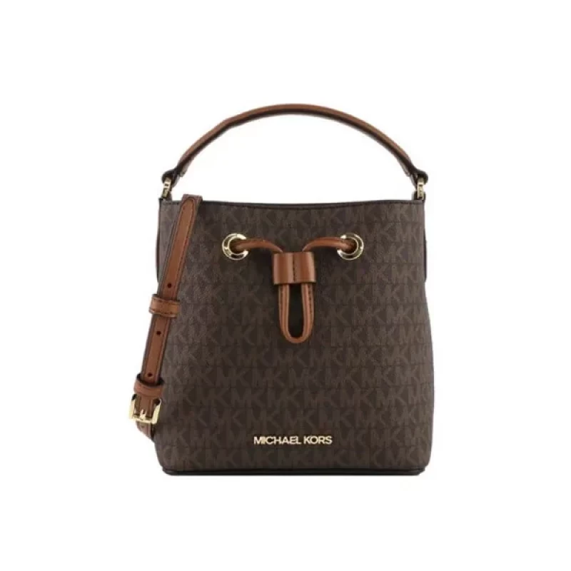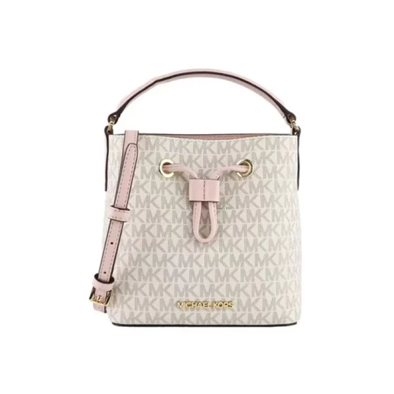 最新的 mk 水桶包新款 則在細節上更顯精緻。包身採用耐磨皮革與金屬抽繩結構,內層空間分佈合理,能輕鬆收納手機、錢包與化妝品等日常用品。肩背與斜挎兩用設計也大大提升了使用彈性,無論是上班通勤或休閒出遊,都能展現不同風格。