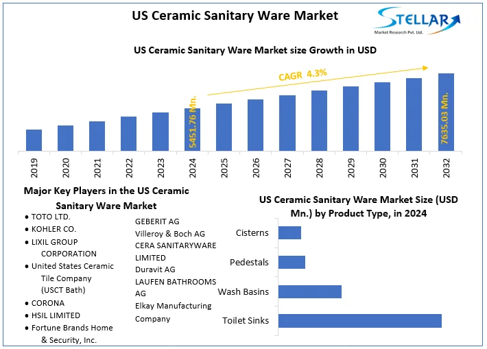The U.S. ceramic sanitary ware market was valued at approximately USD 5.45 billion in 2024 and is projected to reach USD 7.64 billion by 2032, growing at a compound annual growth rate (CAGR) of 4.3% during the forecast period from 2025 to 2032.