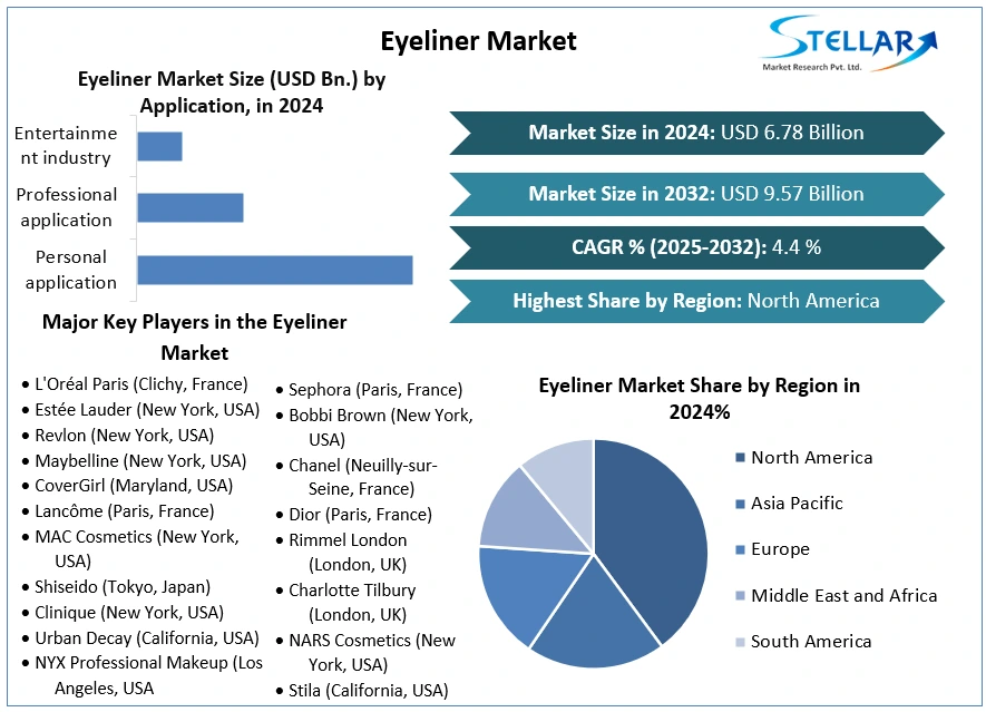 The Eyeliner Market, valued at USD 6.78 billion in 2024, is poised for significant growth, projected to reach USD 9.57 billion by 2032. This growth is driven by factors such as rising beauty consciousness, the influence of social media, product innovation, and the expansion of e-commerce platforms.