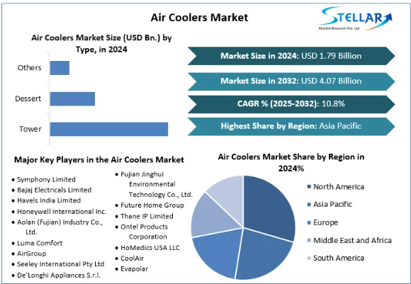 Stellar Market Research, a leading business consultancy firm, has published an in-depth analysis of the Air Coolers Market, offering valuable insights and projections. This detailed study covers critical business intelligence, demand analysis, pricing strategies, competitive landscape, and key growth drivers, providing a comprehensive view of the Air Coolers market's current state and its future potential.