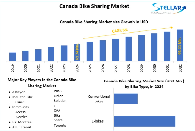 Stellar Market Research, a leading business consultancy firm, has published an in-depth analysis of the Canada Bike Sharing Market, offering valuable insights and projections. This detailed study covers critical business intelligence, demand analysis, pricing strategies, competitive landscape, and key growth drivers, providing a comprehensive view of the Canada Bike Sharing market's current state and its future potential.