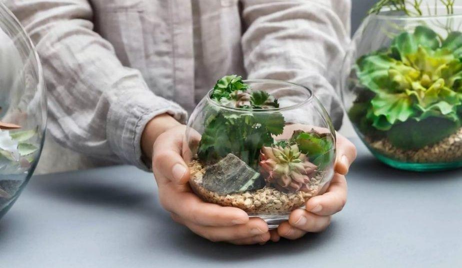 A terrarium is a miniature ecosystem that teaches water cycles and plant compatibility in a small format.