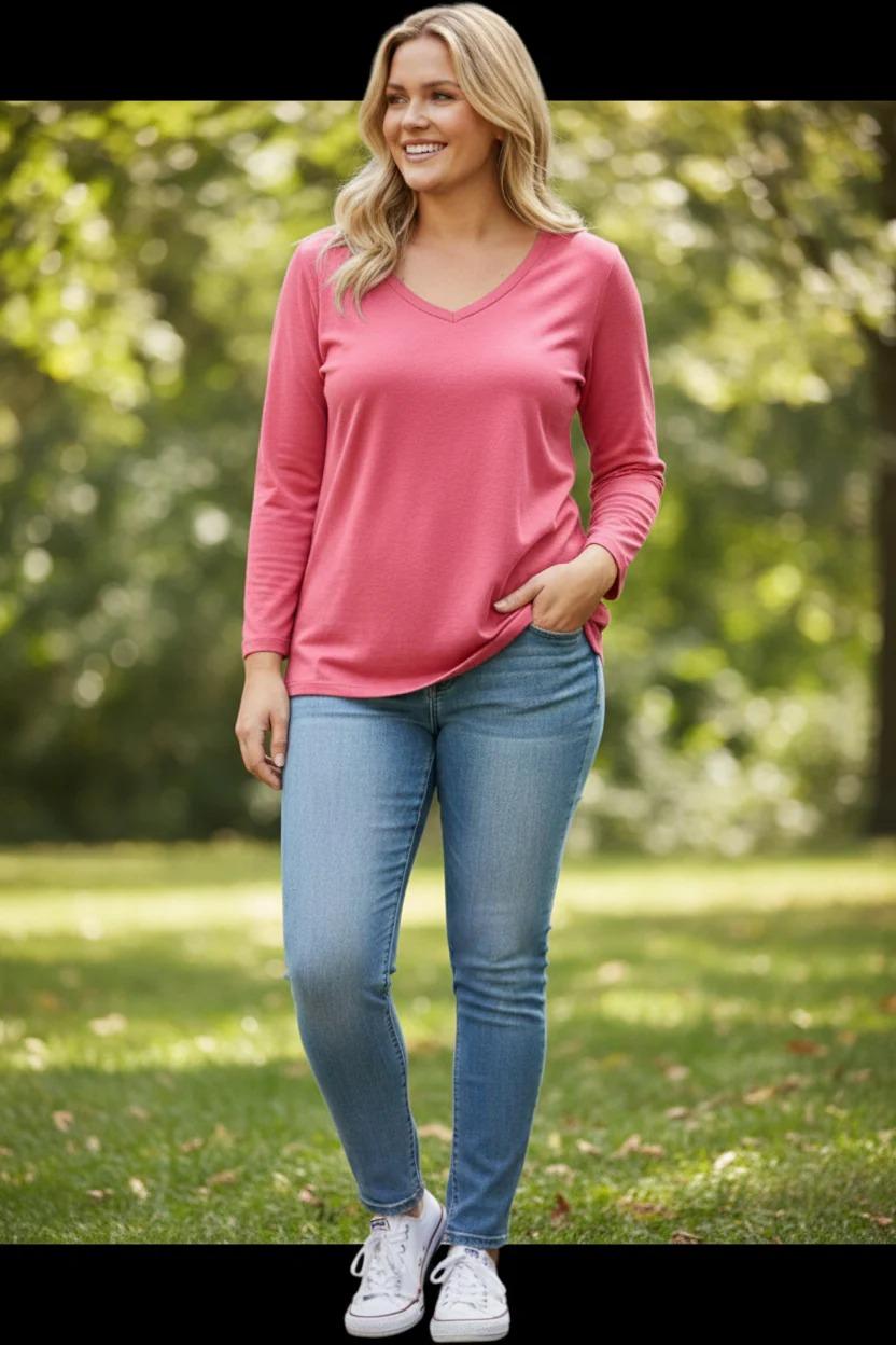 Lady's V-Neck Merino T-shirts 3/4 Sleeve (5 Colours)
