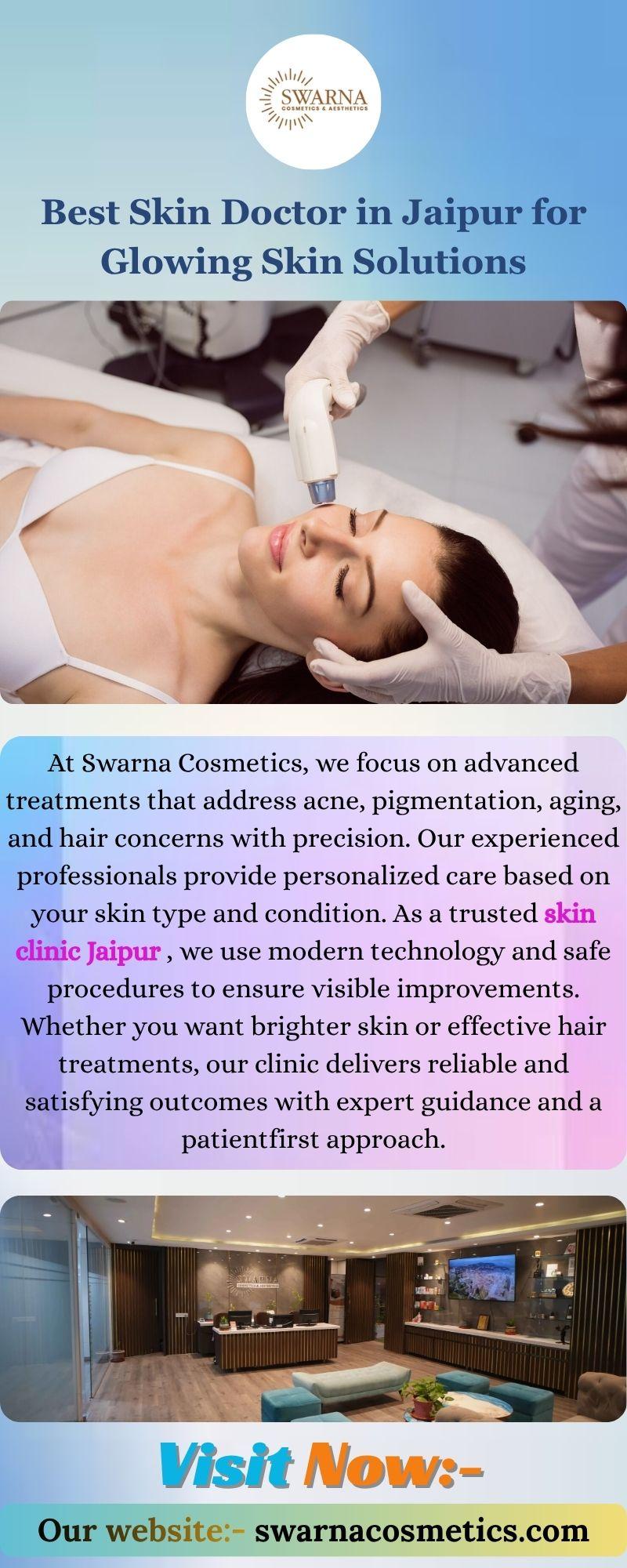 Best Skin Doctor in Jaipur for Glowing Skin Solutions Finding the right skincare expert is important for long term results. At Swarna Cosmetics, we focus on advanced treatments that address acne, pigmentation, aging, and hair concerns with precision. Our experienced professionals provide personalized care based on your skin type and condition. As a trusted skin clinic Jaipur , we use modern technology and safe procedures to ensure visible improvements. Whether you want brighter skin or effective hair treatments, our clinic delivers reliable and satisfying outcomes with expert guidance and a patient first approach. Visit us:- https://swarnacosmetics.com/